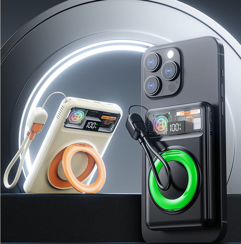 15W MagSafe Wireless Charger Digital Display 10000mAh 20000mAh Ultra-thin Portable Power Bank with Stand Cable